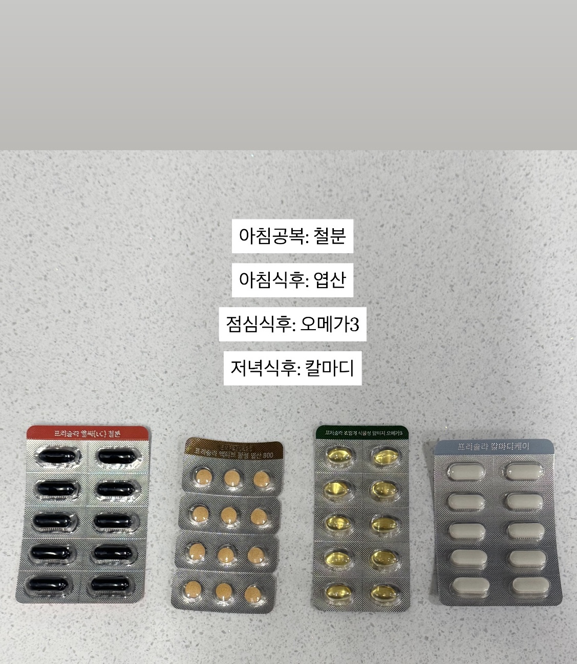 1. 프리솔라의 엽산, 철분, 칼마디, 오메가3의 올바른 복용법과 순서, 시간을 알려주세요