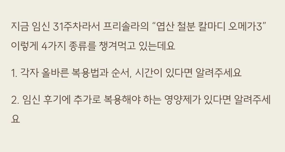 2. 임신 후기에 추가로 복용해야 하는 영양제가 있다면 알려주세요