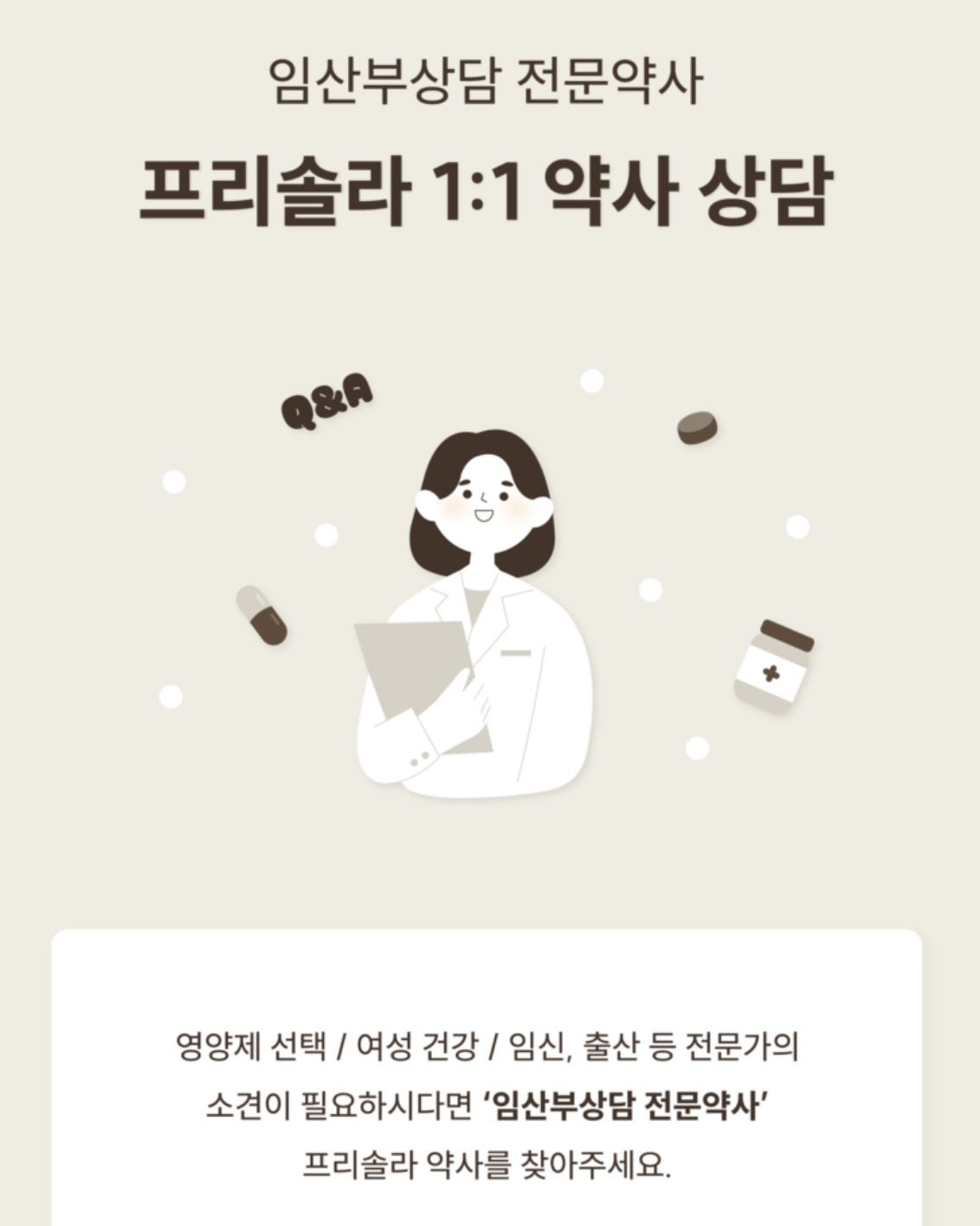 : 프리솔라 약사님 상담은 임신 중인 분들에게도 추천하지만, 저는 특히 저처럼 임신 준비 중이거나 출산 후 분들에게 더 추천드리고 싶습니다.