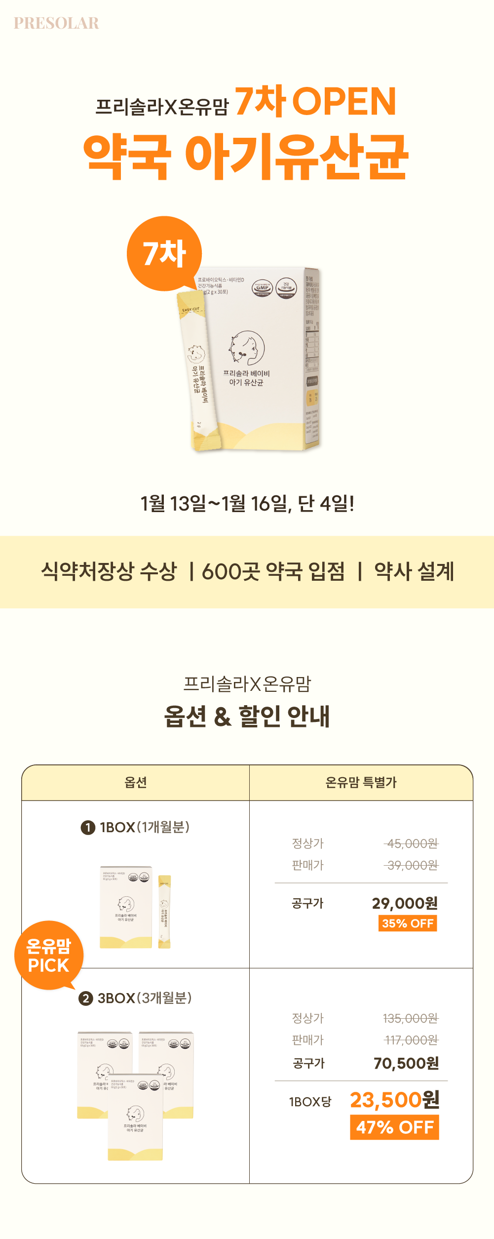 온유맘X프리솔라 7차 아기유산균 공동구매